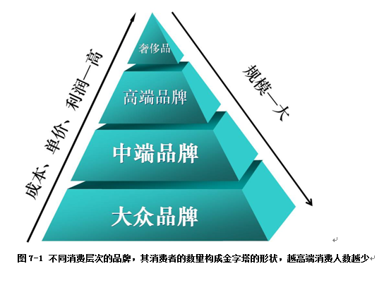 7-1 不同消费层次的品牌,其消费者的数量构成金字塔的形状,越高端消费人数越少