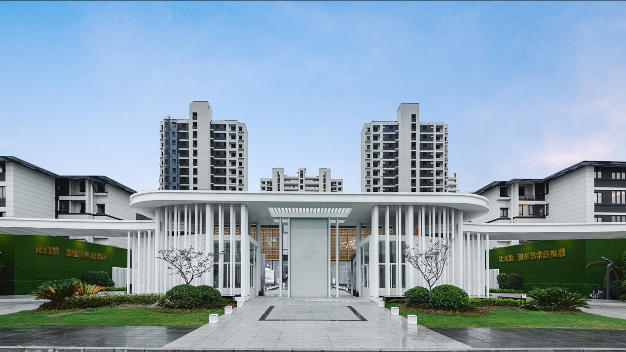 售楼处外场包装主要是针对外场的广场、景观等进行包装,外场的展示性关系到能否吸引客流进入内场,因此在包装的时候需要注意到是否能够契合项目形象、是否有吸引力、是否能够让客户顺利找到售房部等。