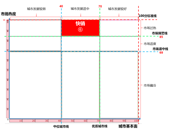九宫格四至六区均处在城市发展适中区,根据市场热度从低到高重新定义九宫格四至六区策略。