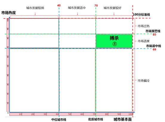 九宫格七至九区均处在城市发展较好区,根据市场热度从低到高重新定义九宫格七至九区策略。