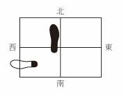 2.上半身不动,右脚踩下去,左脚拉开与肩同宽,脚跟点地,三点不动一点动。