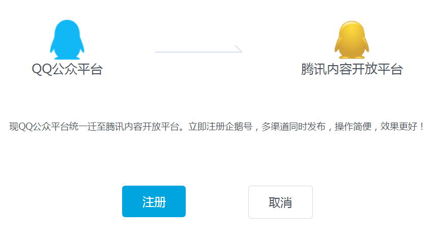 图1 QQ公众号迁移到企鹅号平台的通知消息