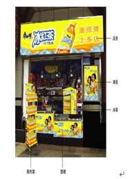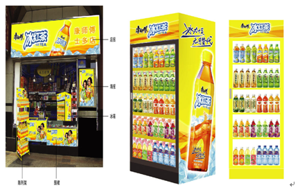 (1)陈列点:店门口、货架陈列、立式冰柜、卧式冰箱、挂架等;