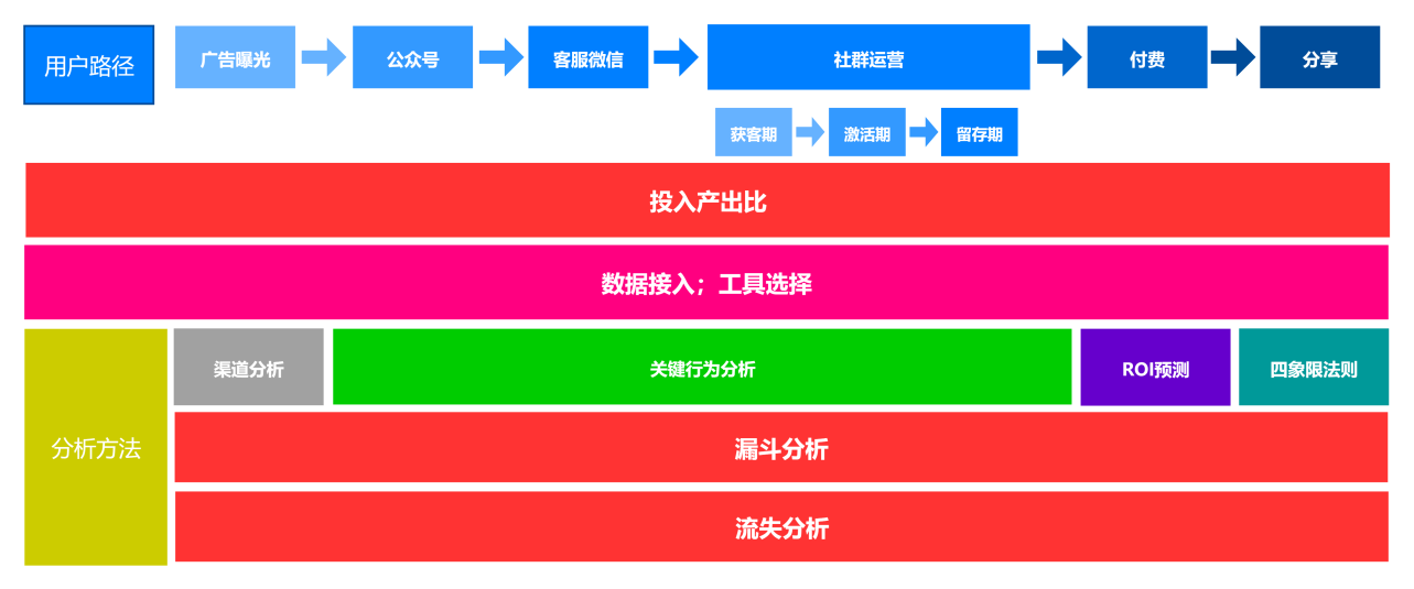 以上两种方法,一般是对整个社群运营,从引流到最后付费下单,甚至后面的分享环节,整个过程的分析。