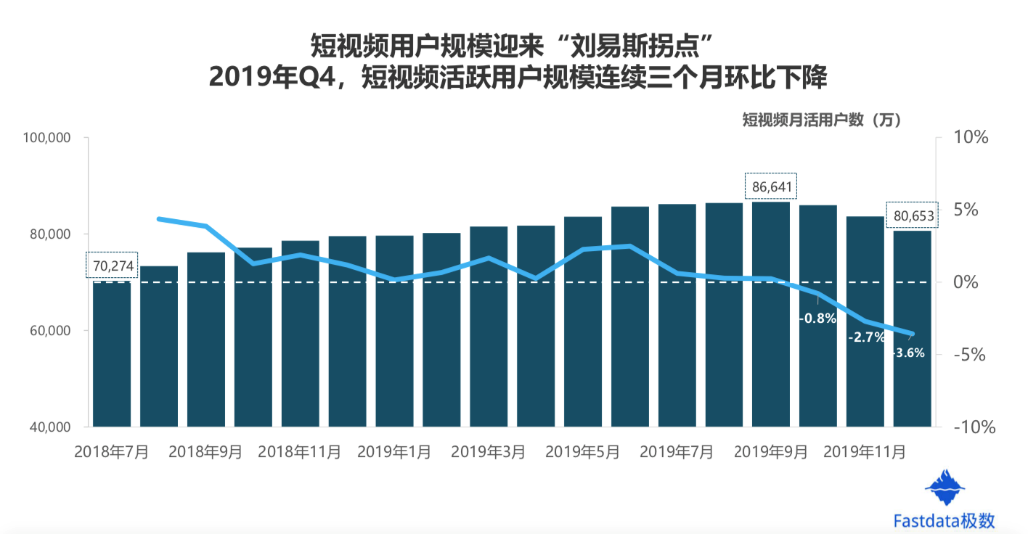 2018年底,我国短视频用户达到6.8亿,网民使用率达78.2%,成为除即时通讯之外的第二大移动互联网市场。截止到今天,短视频行业发展已经高度成熟,短视频用户规模也迎来了“刘易斯拐点”,短视频活跃用户的规模连续三个月环比下降,这标志着短视频行业同大多数移动互联网行业一样,由增量市场进入存量市场,保留存、提黏性已然是现在短视频行业的重点。如图5–1所示。