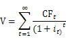 其中,V为总价值;t为时期;CFt为第t期的现金流;为未来所有时期的平均折现率。