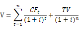 收益法估值原理下,价值的计算公式为: