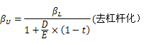 ②通过去杠杆化公式,卸载可比公司财务杠杆。