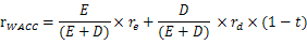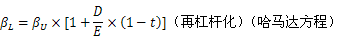式中,,D表示负债的市场价值,E表示权益的市场价值,t表示所得税税率。