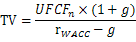 式中,假设预测期共有n期,TV为预测期末的终值,为预测期最后一期无杠杆自由现金流,g为永续增长率,为加权平均资本成本。