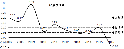 一家企业的9C系数低于0.05,就已经进入危险区了。乐视网2016年的9C系数是-0.09,说明它已经处于高危状态了。