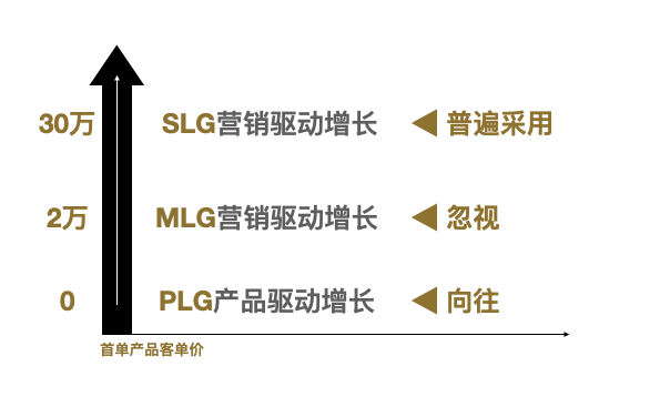 ·对于30万以上客单价产品的企业,适合SLG(Sales-led Growth)的增长模式,以销售带动企业的增长。