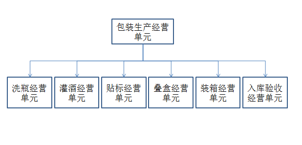 生产工序是指各种原材料、半成品按照一定的次序进行生产加工,最终做成成品的先后顺序。按照生产工序维度划分经营单元,往往在对生产、加工型类的战术级经营单元进行内部二次划分时使用。例如:对W集团生产基地的包装车间进行经营单元划分时,根据其包装生产的工序,将其初步划分划分为如下图的六个经营单元: