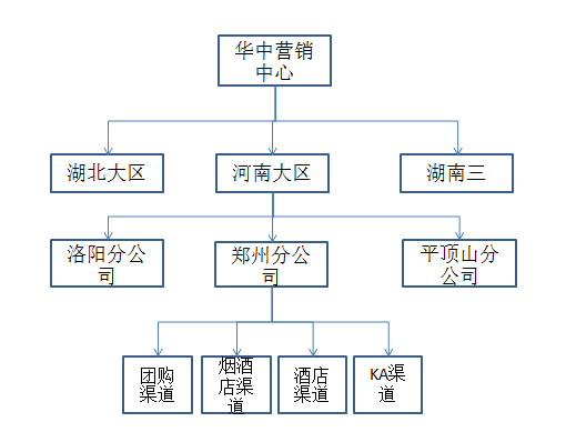 酒水消费的多样化,比如家饮、聚饮、宴请、送礼、公关等多种复杂的需求,导致国内酒水行业渠道复杂性远比其他行业的渠道更高。陈春花曾在《领先之道》一书中指出,“渠道对领先企业的格局影响是最为直接的”。为了更好地满足市场需求,快消品行业的营销公司、营销业务往往按照客户/渠道维度划分经营单元。下图为W集团贸易公司华中营销中心经营单元划分的示例: