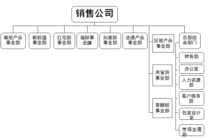 图5-2 某酒业集团按照产品/品牌设置的组织结构图