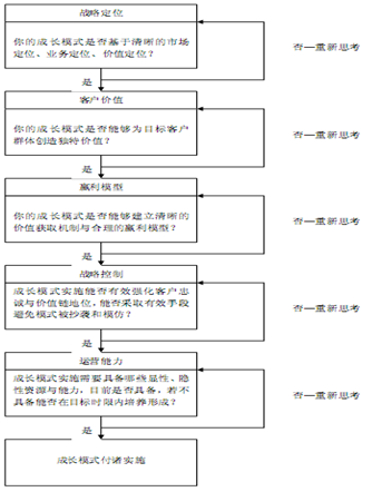 需要说明的是,成长模式设计实质上是一个反复艰难求索的思维过程,实践中的复杂性和难度远非书本上的只言片语可以概括,所以上述的所谓“流程”其意义在于提供思考问题的一种基本逻辑顺序和思维方法。此外成长模式的思考、设计和规划在很大程度上带有“艺术性”其他,特别是与企业家的创新性思维密切相关,因此我们在这里的措词是“找寻”而非“制定”。