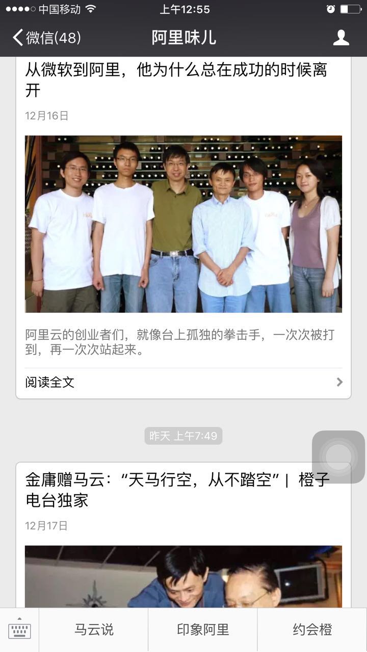 以云纵家人、阿里巴巴和滴滴三家互联网企业的订阅号为例。