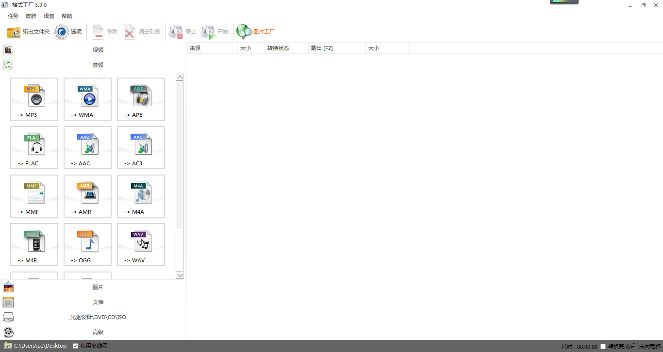 微信公众平台的音频格式支持mp3、wma、wav、amr,文件大小不超过30M,语音时长不超过30分钟。现有音频文件不符合标准时,可使用“格式工厂”软件更改文件格式,如图2-34所示。