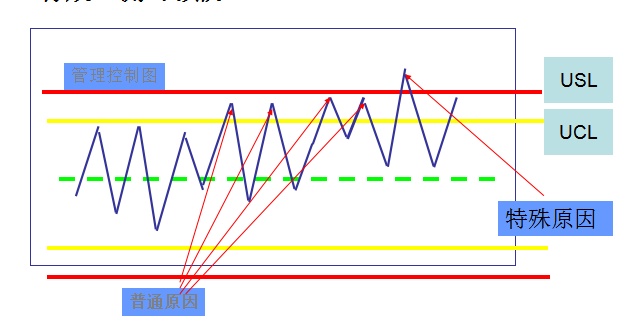 5.3通过控制图,可以帮助我们针对品质问题进行原因分析,找到失效的主要缘由,并对普通原因与特殊原因加以区别,以避免改善的盲目性。如图4-1-1所示。