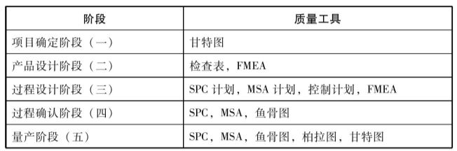 6.2 SPC主要在APQP第三、四、五阶段中得到普遍运用,第三阶段的作用主要是识别不同特性分别使用什么样的控制图,并做出SPC计划;第四阶段收集数据、评估过程能力以及评价是否可量产;第五阶段主要监控过程是否有变异、过程能力是否充足。