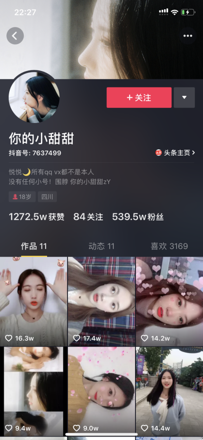 图2-7小甜甜抖音账户页面