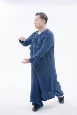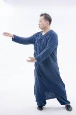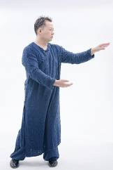 叠腰这两字用得好,转胯只是腰转胯落。但叠腰就得关注到后腰眼。当你身向左转之时,关注的重点在左后腰与左胯、左膝与左脚踝的三环堆叠,形成龙形三叠。身向左右转时,眼神必须跟着前手的中指走,不要看高也不要看低。眼神的运转是心神合一的关窍所在。当转胯将尽时,意念必须放在该方向的后腰眼,想象炁机由此流淌而过,经督脉过夹脊而通往手指末梢。如果能将云手训练出来的所有一切,融会贯通到每个式子当中,那对于摄生疗愈的效果将大大提升,不可同日而语。