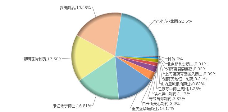 (2)该产品剂型齐全,其中颗粒剂为主要剂型之一,市场中常见企业有七家,两家以临床为主,五家以流通和零售为主,价格逐步趋向透明。其余剂型为干混悬、咀嚼片、胶囊、片、分散片。