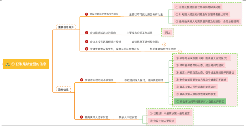 现象③会议目标不是以解决问题为导向,而是被曲解为定功、定责等。在我们的成长历程中,不论是从小在学校读书还是长大在职场开会,不论是历朝历代的百官上朝,还是现在企业中的经营分析会,似乎印象中在会议上让别人看到自己的不足是一件让人非常羞愧的事情,甚至因此会让老板和同事怀疑我们的业务能力,还有可能影响到自己在企业的职位变化和晋升发展。毫无疑问,当所有的参会者人员每一个会上建立这样一个固定认知的时候,我们在会议中得到的信息就一定会受限,甚至是片面化。