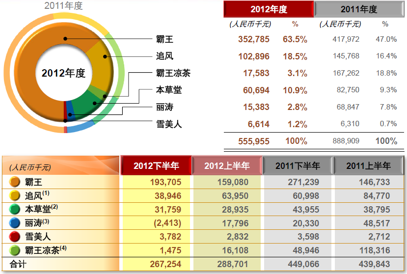 让我们用事实来说明。从霸王公开的年报中,我们可以发现,霸王旗下六大主力产品,只有凉茶是用品牌延伸,其他的都是用品牌定位推出的新品牌。如果,霸王集团是品牌延伸的产品多,这样批评霸王不懂品牌战略,还说得过去。可是,无论从发展历史还是从旗下的几大品牌来看,霸王集团是更倾向于独立品牌和品牌定位的。本草堂、追风、丽涛等就是独立新品牌,从实际业绩上看,效果也还可以。