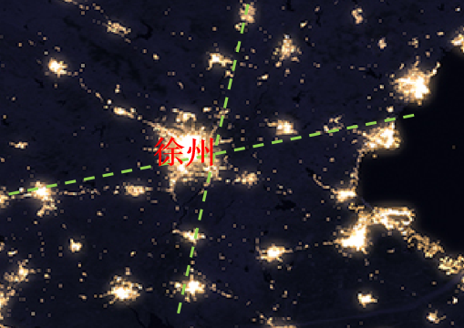 从卫星灯光图可以看出,徐州是该区域的核心城市,徐州四省通衢,交通发达,其余城市围绕徐州沿陇海和京广线分布。