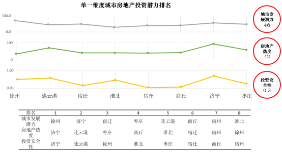 我们从城市发展潜力、房地产市场热度、投资安全性三个单一维度给出城市群各城市排名情况如下图:
