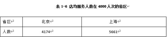 5.店均服务人数在4000人次的省区有2个(见表1-6)。