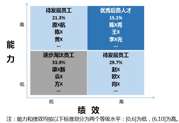 团队能力绩效四宫格---以待发展人才为主,优秀后备人才不足