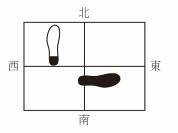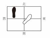 3.上半身保持不变,左脚向正北直线“荡”出一步,左脚跟点地,重心仍然在右脚,左脚成虚脚。