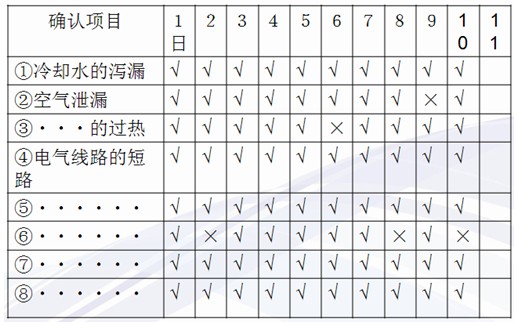 例2:设备点检确认表如表1-5所示。