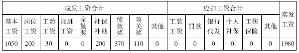 表2-11 XX出勤为28天的工资计算表