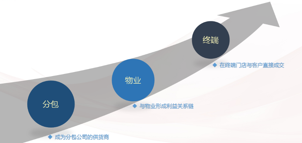 家装模式从原先的包清工、半包、全包,发展到整合了家具软装和家电,将所有居家元素全打包的“整体家装”(萌发阶段),经历了主材代购向采购模式快速迭代。作为定制家居的上游,家装行业最先接触消费群体。对毛坯房而言,橱柜品类很可能已经被家装公司提前占领,“剩下的”才是终端门店的地盘,如图9-1所示。
