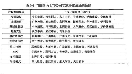 需要说明的是,上表看似激励模式类型很多,实际上有些并不是真正的激励模式,如“员工持股、经营者持股”是一个激励对象的概念而不是激励手段的概念;还有些是上市公司实施的一些不需证监会审批、仅股东大会表决通过即可以实施的一些变通的激励方案。
