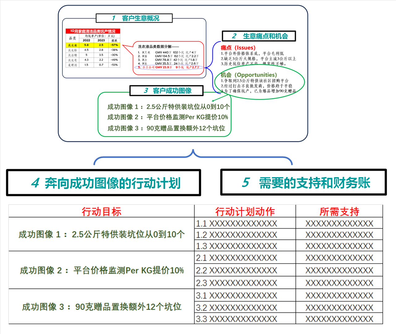 “这个社区团购的案例只是参考,更多是需要不断地实践,在实践中就能摸索出每个渠道不同客户的生意打法和计划特点,对症下药。总之,虽然我们以往并没有针对非零售客户的现有方法论,然而每个渠道类型的客户都可以通过努力制订出‘专属一页精要’计划!加油!”老王继续鼓励着……