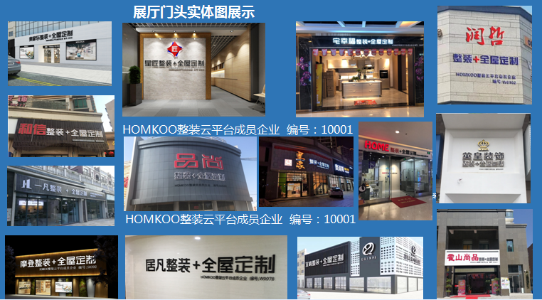 1.对消费者而言,看得见、摸得着的“整装+全屋定制”体验尤为重要,家装全流程的体验必须依赖于展厅,凡是加入HOMKOO整装云的成员装企,首要任务就是建立一个整装展厅。