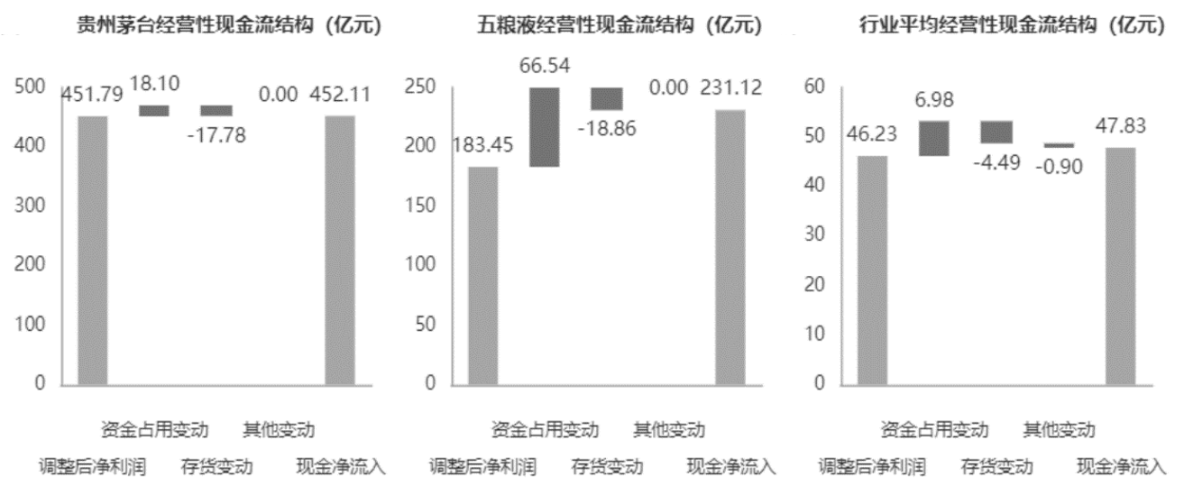 图8-12 贵州茅台、五粮液、白酒行业的经营性现金流结构