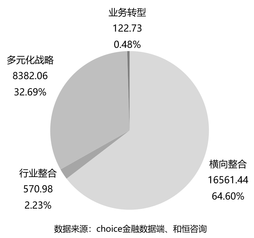 图1-2 2020年上市公司并购重组不同交易目的总金额情况(亿元)