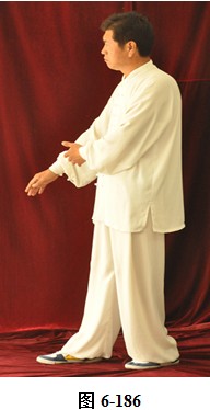 松腰:含腹,往上提腰,两臂随之往前上推出,重心随之移于右腿。