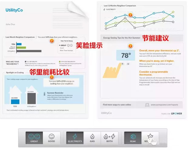 Opower结合行为科学、云数据平台、大数据分析,为用户提供用能服务,帮助售电公司建立更稳定的客户关系并实施需求响应。OPower公司通过自己的软件,对公用事业企业的能源数据,以及其他各类第三方数据进行深入分析和挖掘,进而为用户提供一整套适合于其生活方式的节能建议。