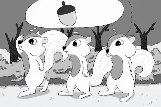 (漫画配文:天降大雨,森林看海,咱哥仨一起出发去找坚果。一桶“坚小果”耶!他俩喜欢核桃,我不发表意见。他俩真扛着“核桃”高高兴兴地走了。鼠才啊,我服了。我用尾巴钓油吃。不容易,这可是个技术活……)