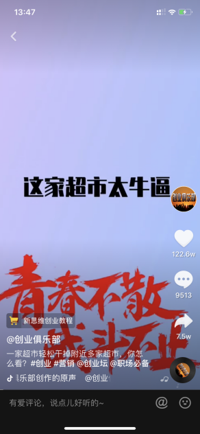 笔者有一个视频内容,讲的是自己小区六号楼超市的营销案例。因为案例详细,技巧实战,可操作性强,被至少上千个营销型账号直接借走创意。有人复制笔者的内容,还有很多账号直接把笔者的声音元素挪到自己的视频里。如图5-17所示。