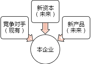 ◎竞争威胁:来自当下的竞争对手、未来可能出现的新进入资本和替代品。如图1.4所示。