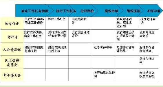 1.第一列为参与绩效考核的五个角色,考核者和被考核者是绩效合同签订的主体。