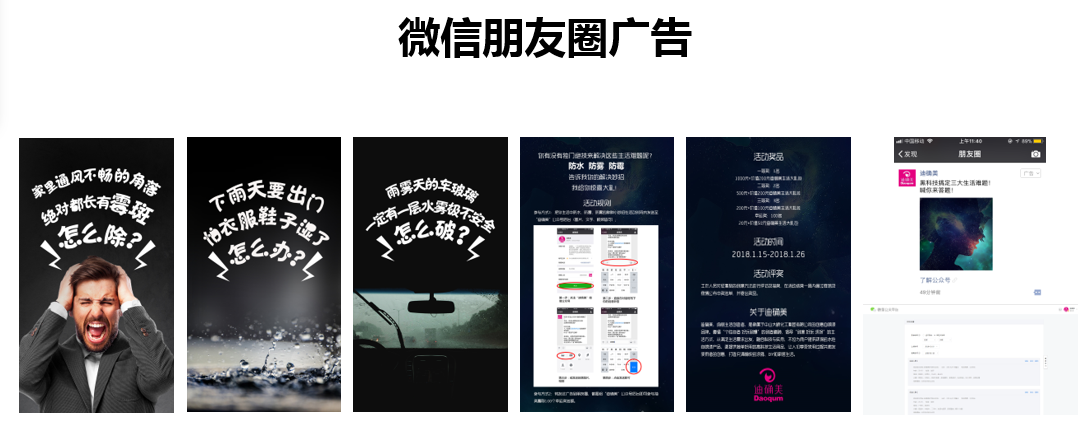 场景是产品策划最好的方式,针对迪确美产品应用的三个主要场景:家居、出行、开车,结合其产品卖点,打造迪确美“三大黑科技”:家居防霉、出行防水、开车防雾,解决用户家里墙体发霉、下雨天出行鞋子容易被打湿、汽车玻璃容易起雾这三个痛点。如图7-17所示。