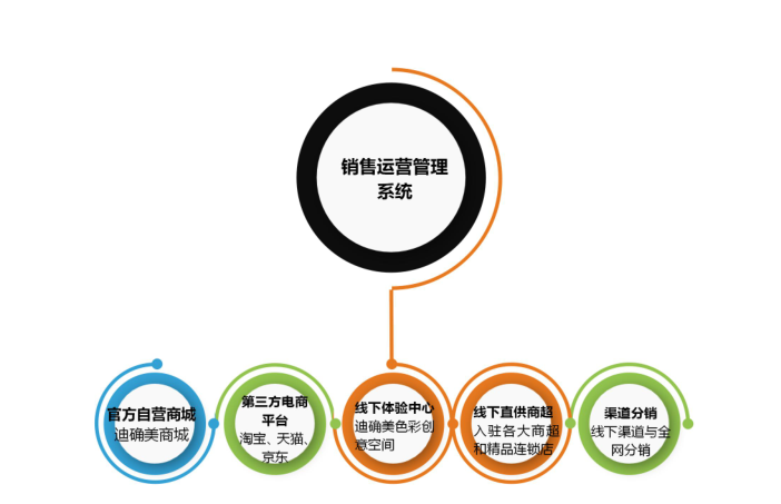 深知为迪确美打造平台联合消费者与加盟商、分销商、创客,构建销售管理平台,迪确美在线下开设色彩体验中心,提供产品体验和免费退换货服务;线上联动线下带动销售,打造新零售商业模式,吸引各方投资加盟。如图7-29所示。